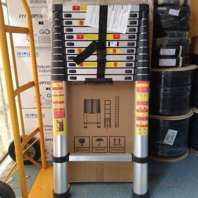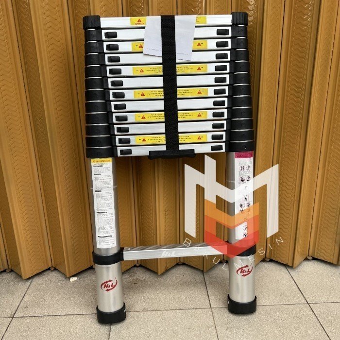 Tangga ini dirancang dengan konsep bersusun sehingga dapat diatur ketinggiannya hingga 5,1 meter.