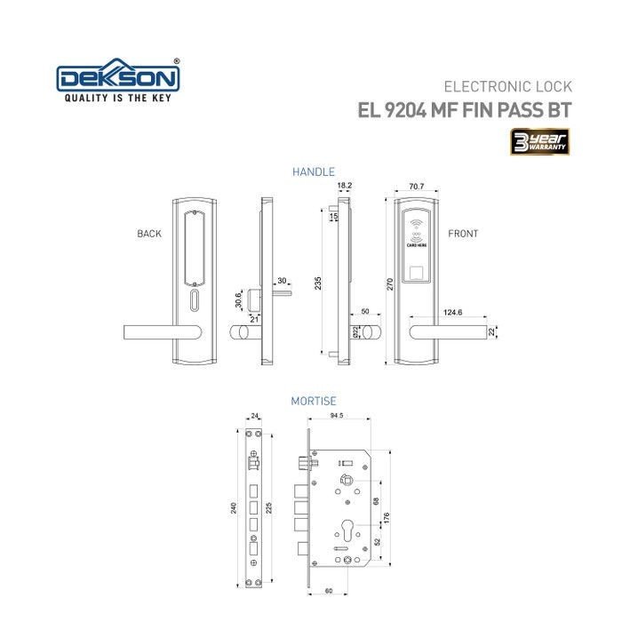 DEKKSON Smart Digital Electronic Lock EL 9204 MF FIN PASS BT