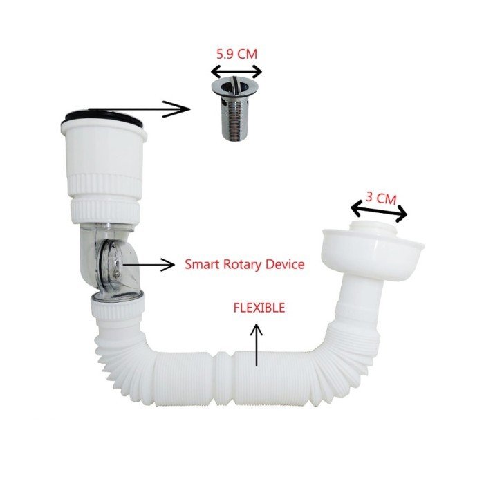 TERMURAH IGM SIFON WASTAFEL PVC LEHER FLEXIBEL + AFUR STAINLESS IS-056