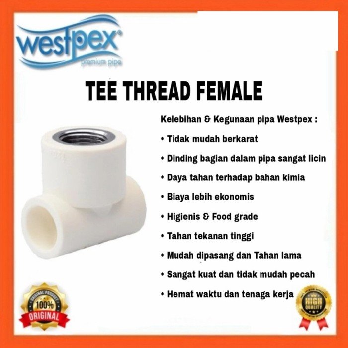 TERMURAH WESTPEX T20 X 3/4F (TEE DD 1/2″ X 3/4″) TEE FITTING PPR