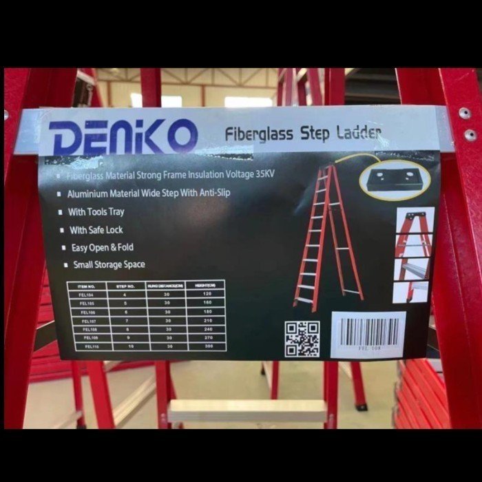 DENKO Tangga Fiberglass 8 Step terbuat dari frame fiberglass yang memiliki sifat non konduktor sehingga tidak menghantarkan listrik dan lebih aman digunakan kuat sampai Voltage 35KV.