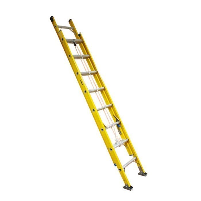 Untuk Anda yang banyak bekerja di lingkungan yang memiliki tegangan listrik tinggi ada baiknya menggunakan tangga dengan material fiberglass untuk meminimalisir resiko kecelakaan.